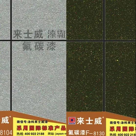 氟碳漆作為一種面漆品種,顏色多樣(各種實體色和金屬色等),光澤可選啞光、平光、無光等,為設(shè)計師和業(yè)主提供豐富的想象空間和奇異的裝飾效果。