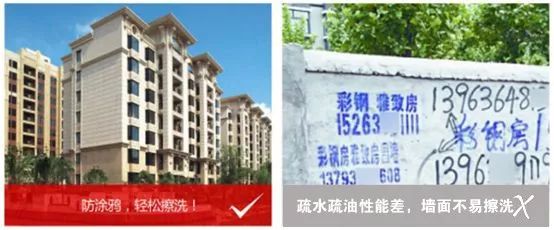 部分廠家在選擇原材料方面,對(duì)于乳液、保護(hù)膠和助劑的相互性能匹配性考慮甚少,未能掌握好各種原材料的投放比例,生產(chǎn)的水包水多彩漆便帶有“先天性”的遇水泛白問(wèn)題。造成多數(shù)工程項(xiàng)目,雨天過(guò)后,墻面出現(xiàn)嚴(yán)重的泛白現(xiàn)象,很難找到有效的解決辦法。