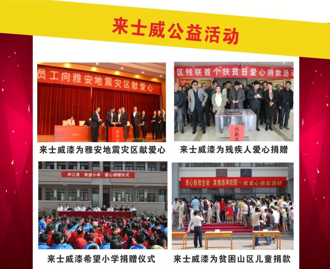在踐行社會(huì)責(zé)任方面,來(lái)士威積極投身社會(huì)公益事業(yè),資助全國(guó)少、邊、農(nóng)地區(qū)的貧困學(xué)子圓夢(mèng)大學(xué)。以實(shí)際行動(dòng)感恩社會(huì),詮釋了“以品樹(shù)人”的宗旨,傳遞了“扶危濟(jì)困”的社會(huì)正能量。