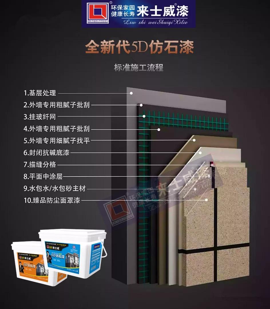來士威水包砂仿石漆裝修后的建筑物,具有天然真實(shí)的自然色澤,給人以高雅、和諧、莊重之美感,適合于各類建筑物的裝飾。來士威水包砂仿石漆,在曲面建筑物上裝飾,可以收到生動逼真,回歸自然的功效,目前越來越受到市場追捧!