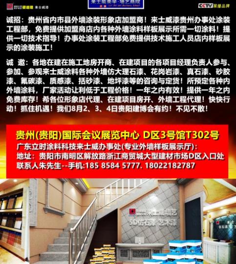 大時(shí)代 大發(fā)展 大贏利 廣東立時(shí)涂料科技貴州辦事處誠(chéng)邀你品鑒貴州建博展來士威墻藝漆大系列