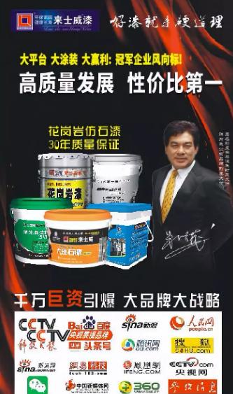 冠軍企業(yè)來士威仿石漆大系列強勢出擊  人氣爆棚 碩果累累! 2019年8月22日-23日“云南建博會”在昆明舉行。“由“建”到“裝”以一站式產(chǎn)品服務陳列展示全產(chǎn)業(yè)鏈覆蓋”——已發(fā)展成為建筑裝飾材料領域規(guī)模最大、最具影響力的行業(yè)盛會。本次展會上,來士威仿石漆攜帶系列仿石漆及藝術漆拳頭產(chǎn)品系列驚艷亮相展會,成為展會上的一大亮點。
