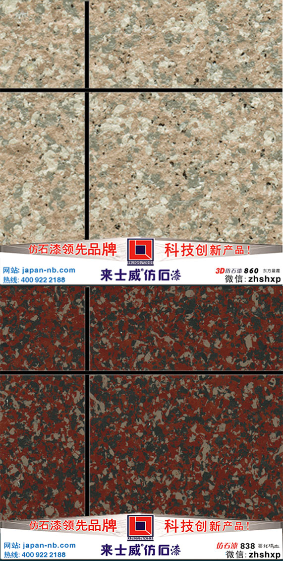 2、高仿真性:涂層凹凸有致,調(diào)色千萬種;花紋可大可小,色彩可以相互疊加,可以模仿天然,巧奪天工,勝過天然。