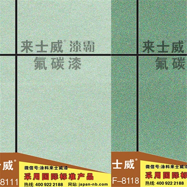 氟碳面漆是選用優(yōu)良氟碳樹脂為基料,添加助劑及各種金屬效果顏料精制而成的雙組份溶劑型外墻漆,具有良好的耐候性、抗污性和抗腐蝕性,金屬效果顏料的隨向異色性賦予漆膜很高的裝飾性和華麗的質(zhì)感。