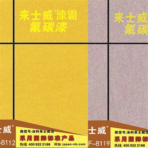 氟碳面漆是選用優(yōu)良氟碳樹脂為基料,添加助劑及各種金屬效果顏料精制而成的雙組份溶劑型外墻漆,具有良好的耐候性、抗污性和抗腐蝕性,金屬效果顏料的隨向異色性賦予漆膜很高的裝飾性和華麗的質(zhì)感。