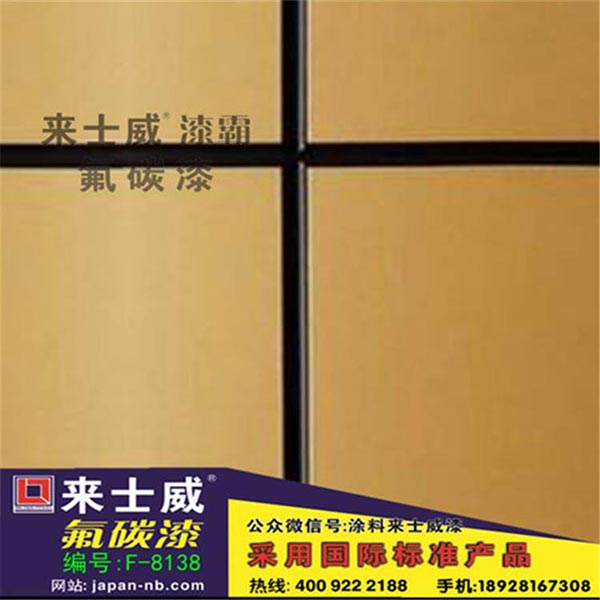氟碳面漆是選用優(yōu)良氟碳樹脂為基料,添加助劑及各種金屬效果顏料精制而成的雙組份溶劑型外墻漆,具有良好的耐候性、抗污性和抗腐蝕性,金屬效果顏料的隨向異色性賦予漆膜很高的裝飾性和華麗的質(zhì)感。